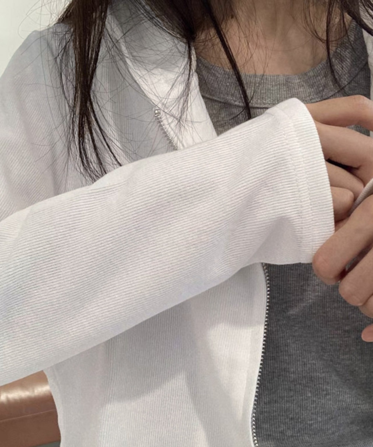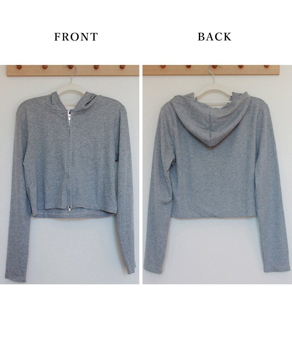 ショート丈 フード付き リブパーカーアウター フルジップフーディー フロントZIP 長袖 前開き オルチャン