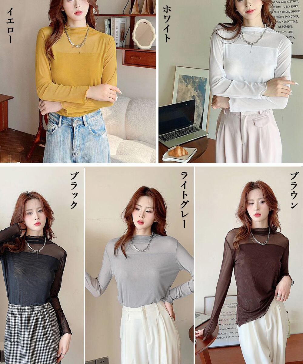 インナー大人可愛い モックネック春秋服 透け感トップス大人