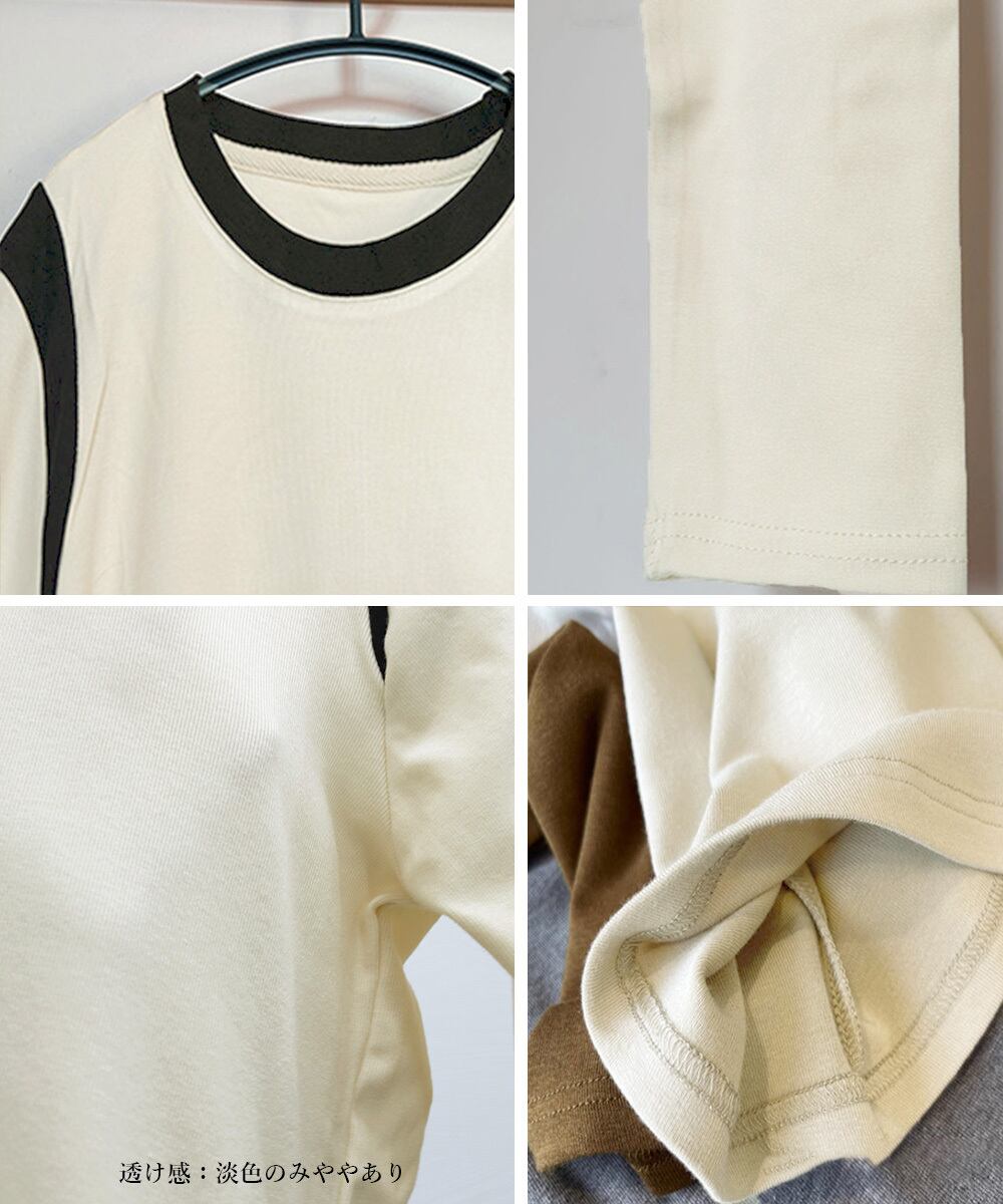 お洒落カットソー ラウンドネック春秋 Tシャツ配色着やせ