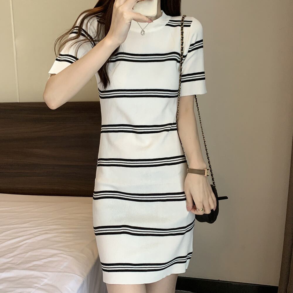 程よく体にフィットしストレートぎみなシルエットが今年らしいサマーニットワンピース