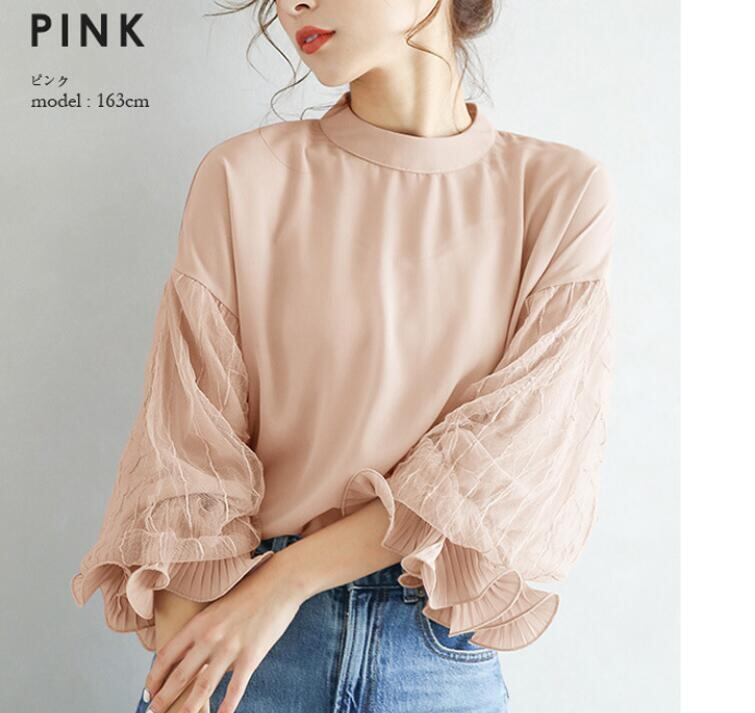 2024春夏新作 ブラウス シャツ トップス シフォンシャツ クールネック メッシュ