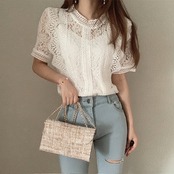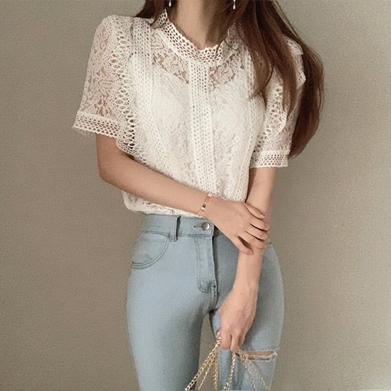 ブラウス レーストップス レディース 半袖シャツ 気質 オシャレ 2024年新作 全4色