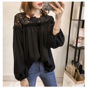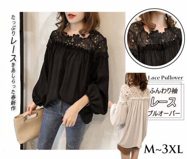 超目玉■カットソー 長袖 オフショルダーみたいな肩レース可愛いプルオーバー 袖ギャザー