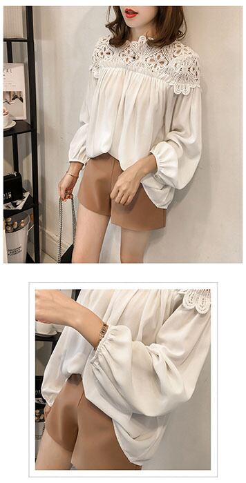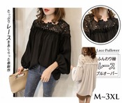 肩が出るトレンドのオフショルダーのように、たっぷりとレースをあしらった春新作プルオーバー。