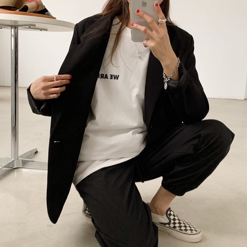 ベーシックなカジュアルスタイルにほど良くモードを取り入れた
