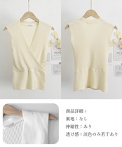 レディース クロップド丈 ノースリーブ ニットカットソー 着やせ セクシー胸元 カシュクール風 ニットウェア 春秋夏