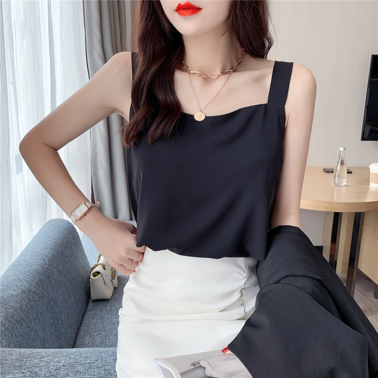 清潔感のあるシンプル シフォンキャミソール