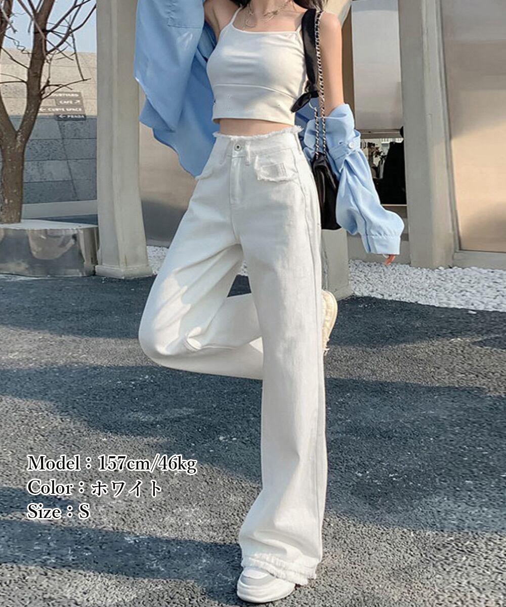 ストレートシルエットで脚のラインを綺麗に魅せてくれます。