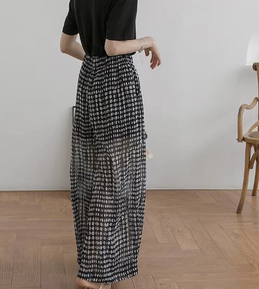 2024夏新作 ドット柄 ロング丈ズボン ワイドパンツ 日よけ レディースファッション 大人可愛い