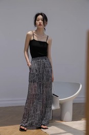 春夏にピッタリな素材のワイドパンツは今季注目のアイテム。