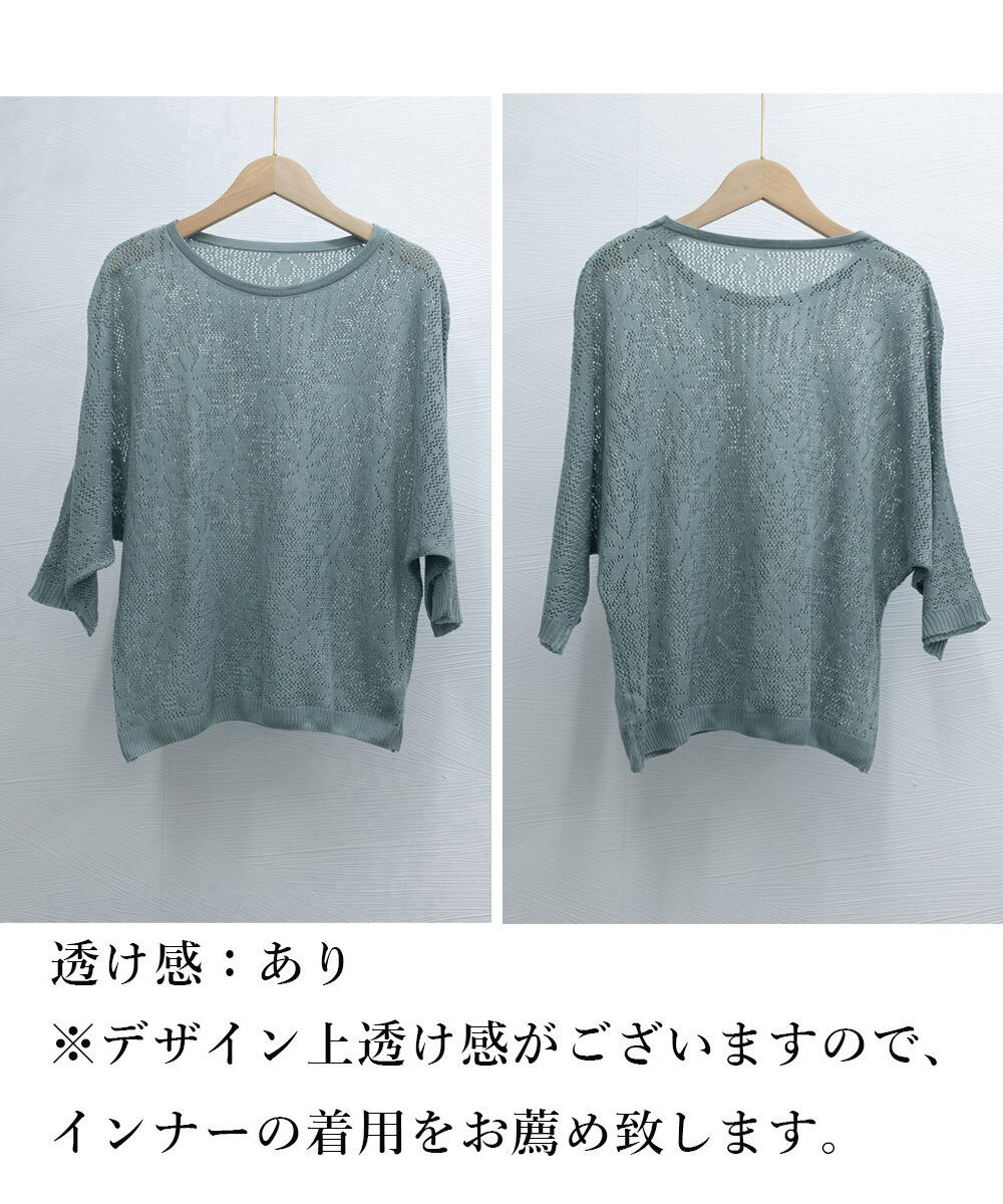 程よい透かし編みが大人の雰囲気を漂わせるドルマンサマーニットトップス