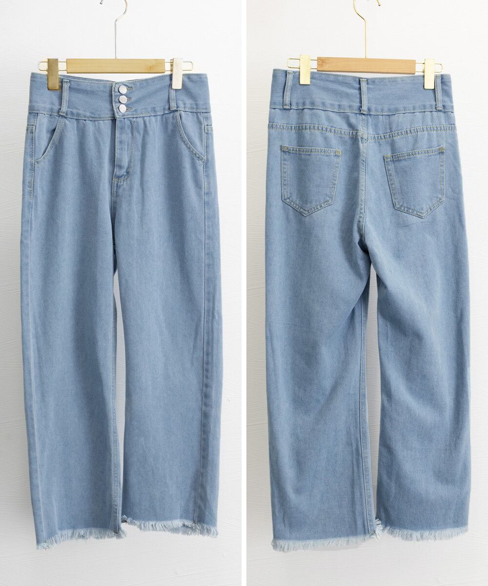 裾フリンジ9分丈デニムパンツハイウエスト