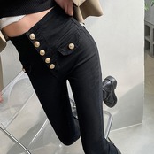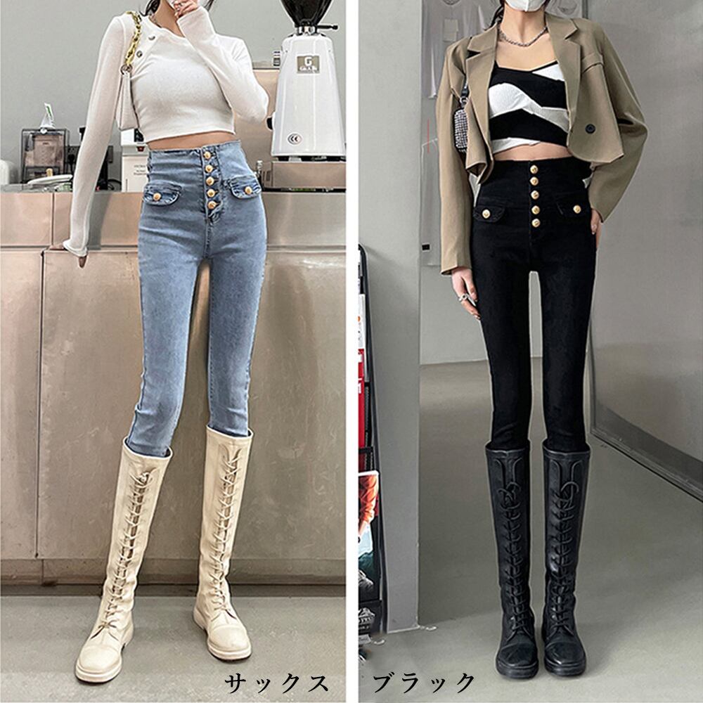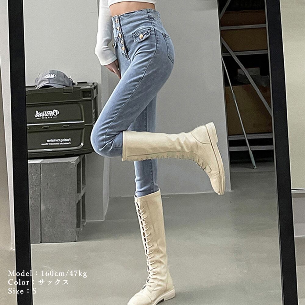 デニムパンツ 細見え ストレッチスキニー 細身 フロントボタン ボトムス ペンシル 大人ジーパン 韓国風 着やせジーンズ
