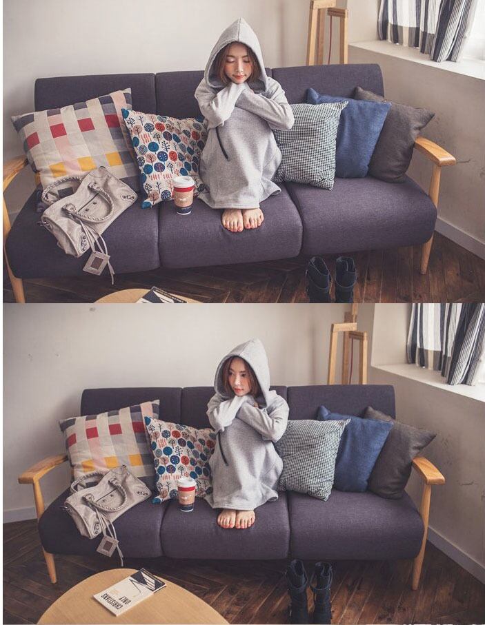 さらに、こだわりはフードをかぶっても尚シルエットがかわいい、ゆったりできる大きめなつくり。