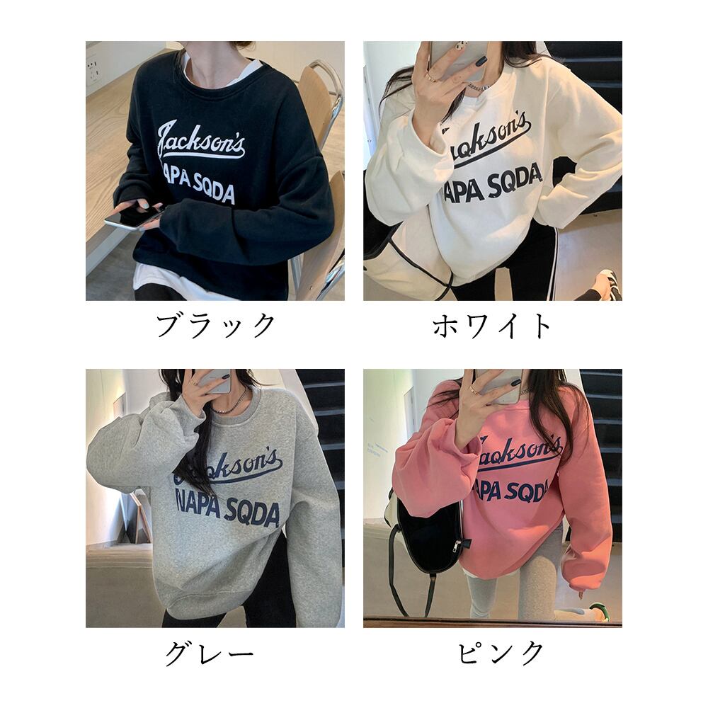 トップス ロゴトレーナー 体型カバー オルチャン ゆったり 裏起毛 オーバーサイズ カジュアル おしゃれ