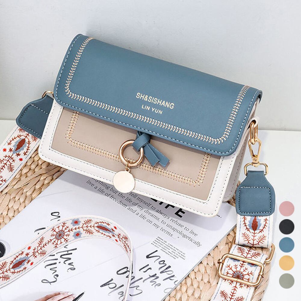 ワイドストラップ バイカラー 韓国スクエアBAG カジュアル 斜めがけバッグ PUレザーメッセンジャーバッグ 大人可愛い