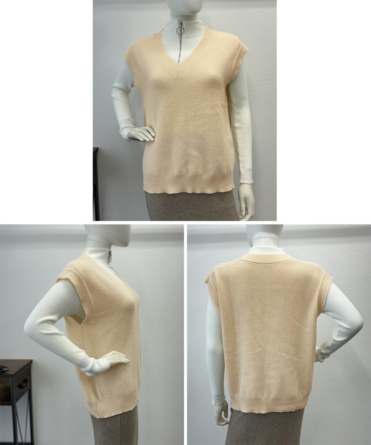 ニットトップス Vネック 体型カバー カジュアルベストセーター 秋冬服 ゆったりニットチョッキ プルオーバー20代30代